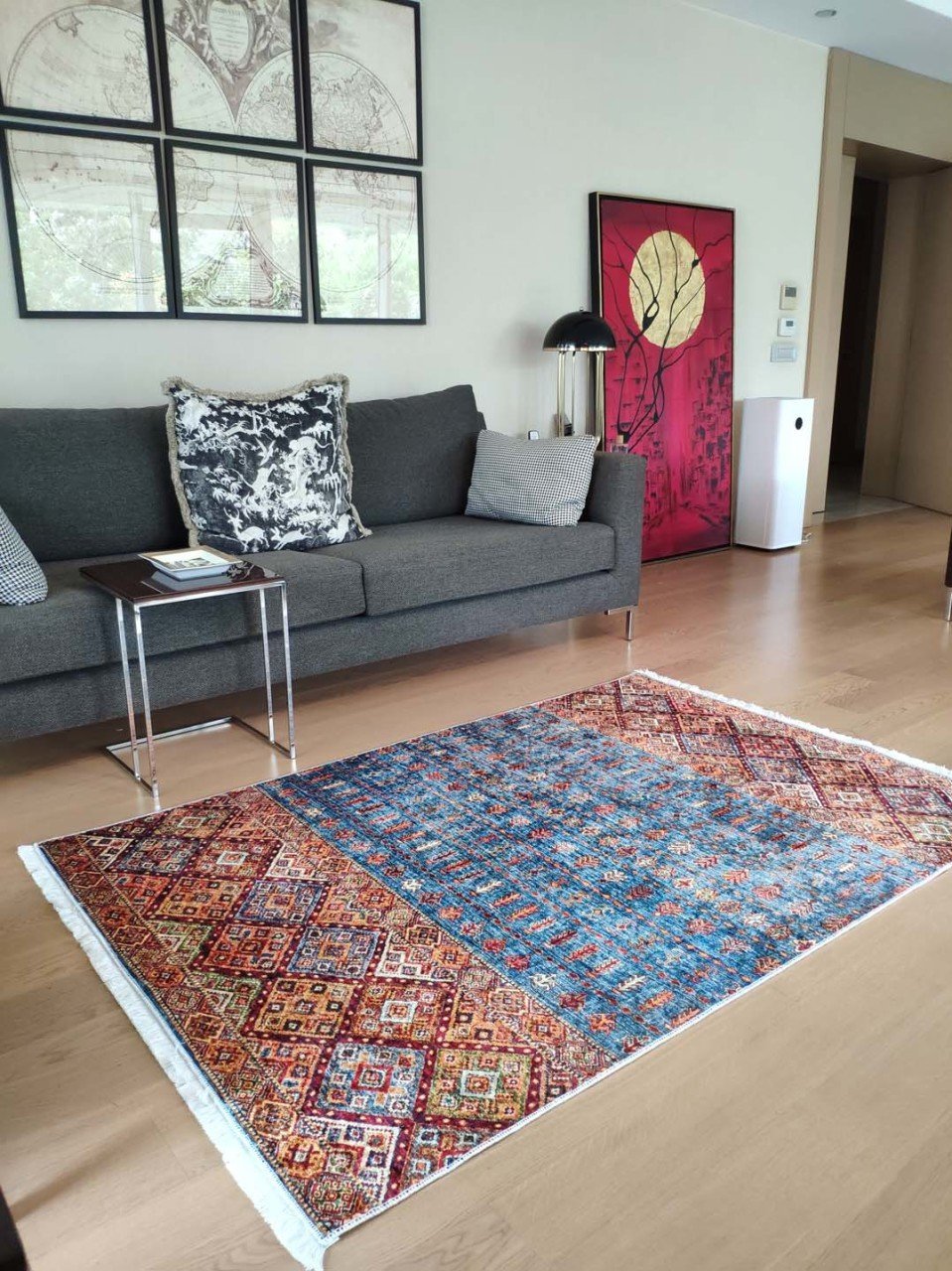 Üst dokusu şönil dokuma üzerine digital baskıdır.